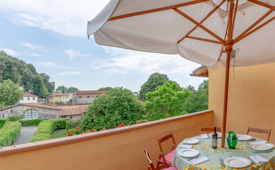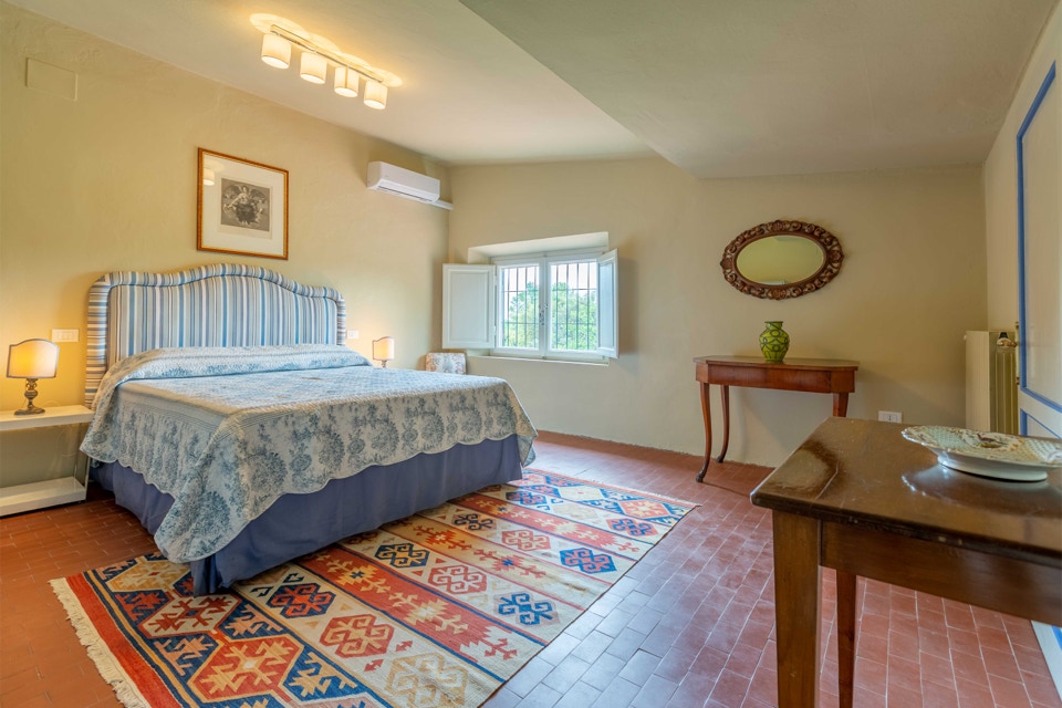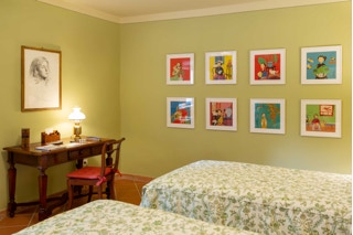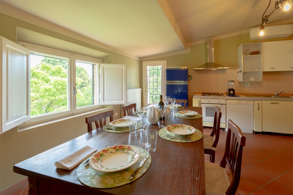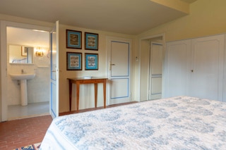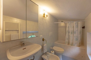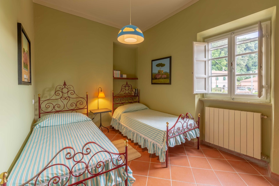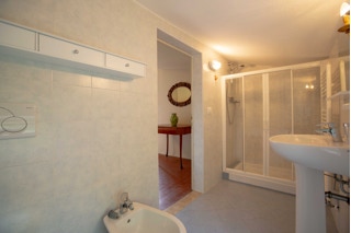 Ampio appartamento al primo piano, con terrazza privata, composto da camera matrimoniale con bagno, due camere doppie con un bagno. Salotto, cucina abitabile attrezzata. Arredato con mobili d’epoca. Vista giardini.