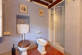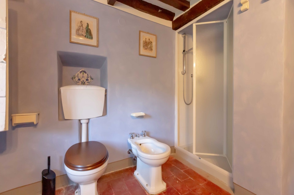 Junior Suite su due piani, con letto matrimoniale ed un elegante spazioso salotto, arredata con mobili d’epoca e moquette, bagno privato con doccia.