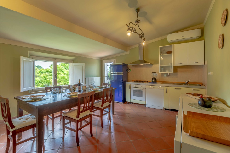 Panoramic apartment with a private terrace that overviews the gardens, composed by three rooms, one with a king size bed with bathroom, two with two single beds and a bathroom, a living room, a fully equipe spacious kitchen.