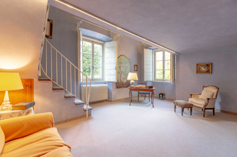 Junior Suite on two floors with double bedroom and spacious elegant living room, gorgeous antique furniture, carpet and private bathroom.
