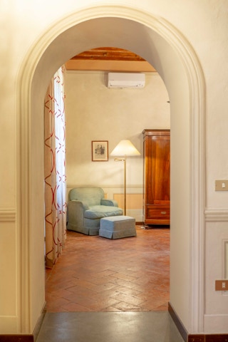A remarkable indipendent apartment on the first floor, with view on the garden, with two bedrooms, one with a king size bed, one with two single beds, a living room, a fully equipped spacious kitchen, a bathroom with shower. Ceiling wooden beams, decorated walls and gorgeous antique furniture.